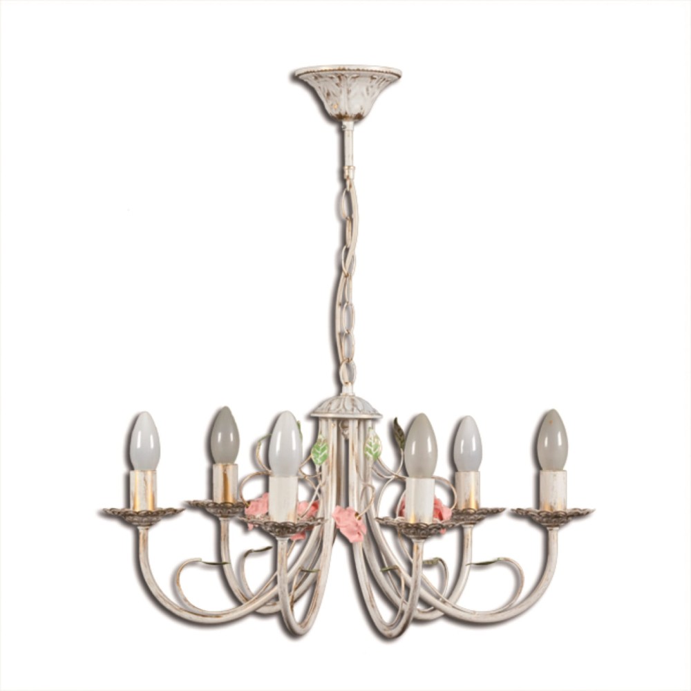 Люстра подвесная 6 ламп с цветами дизайнерская Петрасвет производство люстр №1 в России S1017-6, 6хЕ14 макс, 60Вт, цепь можно укоротить до 1 звена на 17 см, стиль - классика свечи, арматура - металл, цвет светильника- белый с патиной золота, размеры светильника (LxWxH) - 58x58x62, вес - 1,4 кг, Люстра на 2 включения, Люстра подвесная и для натяжных потолков и освещение 20-25 м2 помещения в зависимости от мощности лампочек Е14, Все светильники свечи с цветами и листьями подходят и для натяжных и подвесных потолков, Люстра подвесная цепная 6 рожковая подходит для освещения комнат, кабинета, гостиной, спальни, столовой, детской, кухни, Заводсткая гарантия завода Петрасвет 7 лет, Люстры пяти рожковые собраны и проверены на производстве, люстры просто собираются, плотно упакован в коробке из тройного гофра картона, Упаковка выдерживает и гарантирует сохранность содержимого при падении на дно и ребро коробки с высоты 110 см, Лампочки светодиодные LED подбираются по следующим параметрам: для яркого освещения - 3 Вт на 1 м2 комнаты, для среднего - 2 Вт на 1 м2, В случае боя или не комплекта, вышлем новый за свой счет в день обращения,