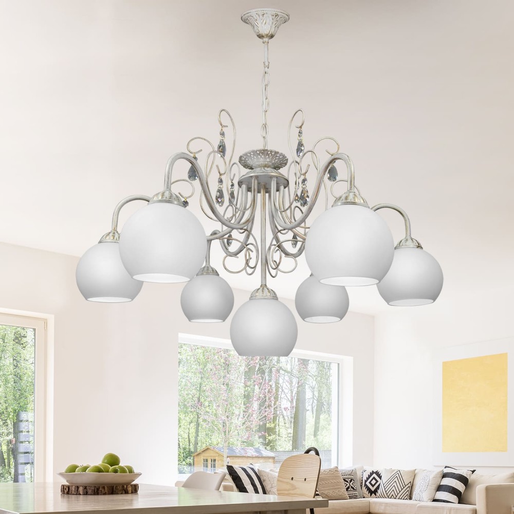| Тип креплениякрюк | Тип монтажаподвесной | Цвет светильникабелый с патиной золота |