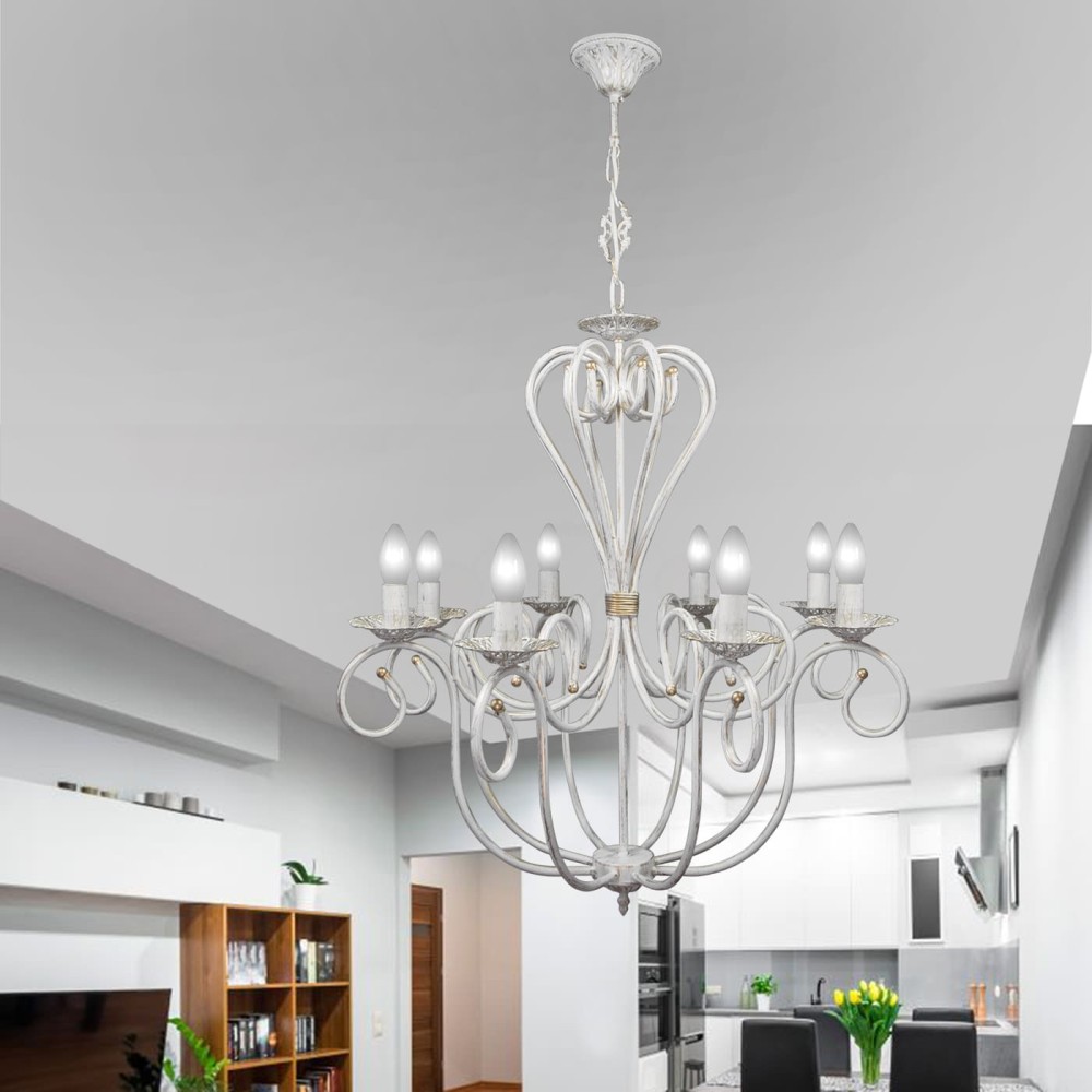 Люстра подвесная 8 плафонов S3017-8 – Элегантное освещение для вашего дома в классическом стиле Эта роскошная люстра S3017-8 от бренда Петрасвет – идеальное решение для создания атмосферы уюта и изысканности в вашем интерьере. Предназначенная для помещений с площадью от 24 до 35 квадратных метров, эта подвесная люстра станет ярким акцентом в гостиной, спальне, столовой или прихожей. Ее классический и неоклассический стиль, выполненный в сочетании патинированного золота и белого металла, придаст вашему дому благородный и неповторимый вид. Преимущества и характеристики: Роскошный дизайн: Люстра S3017-8 сочетает в себе элегантность неоклассики и утонченность прованса. Патинированное золотое покрытие придает светильнику глубину и насыщенность, а белый металл подчеркивает его изысканность. Идеально дополнит интерьеры в стиле ретро, барокко, ар-деко или просто для тех, кто ценит классическую красоту. 8 Плафонов для Максимального Освещения: Благодаря восьми плафонам, люстра обеспечивает равномерное и достаточно яркое освещение. Это создает комфортную и уютную атмосферу в помещении, идеально подходящую для различных видов деятельности – от чтения и работы до приема гостей. Высокое Качество и Надежность: Люстра изготовлена из прочного и долговечного металла, что гарантирует ее надежность и долгий срок службы. Произведена в России, что является подтверждением высокого уровня контроля качества. Универсальность в Типе Ламп: Люстра совместима с различными типами ламп: накаливания, светодиодными и люминисцентными. Вы можете выбрать наиболее подходящий вариант, исходя из ваших предпочтений и бюджета. Светодиодные лампы – отличный выбор для экономии электроэнергии и увеличения срока службы ламп. Подвесной Тип Монтажа: Люстра имеет подвесной тип монтажа, что позволяет удобно расположить ее на необходимой высоте. Крепление осуществляется с помощью крюка, что обеспечивает надежное и безопасное крепление. Габариты: Ширина основания – 12 см, высота – 93-110 см. Размеры коробки – 86 x 74 x 74 см. Световой Поток: 6000 люмен – обеспечивает достаточное освещение для помещения площадью от 24 до 35 квадратных метров. Гарантия: 7 лет – подтверждает уверенность производителя в качестве своей продукции. Комплектация: В комплекте с люстрой поставляется паспорт, что обеспечивает полную информацию о товаре и его эксплуатации. Технические характеристики: Бренд: Петрасвет Страна производства: Россия Материал светильника: Металл Цвет светильника: Белый с патиной золота Тип цоколя: Е14 Модель: S3015 Направление рассеивателя: Вверх Напряжение: 220 В Количество ламп: 8 Стиль: Классический, неоклассика, прованс Площадь освещения: 24-35 м? Световой поток: 6000 лм Тип крепления: Крюк Гарантия: 7 лет Почему стоит выбрать люстру S3017-8? Эта люстра – не просто источник света, это инвестиция в создание атмосферы роскоши и уюта в вашем доме. Благодаря своему стильному дизайну, высоким техническим характеристикам и надежности, она станет украшением любого интерьера. Выбирая люстру S3017-8 от Петрасвет, вы получаете не только красивый и функциональный светильник, но и уверенность в его качестве и долговечности. Она станет настоящим акцентом в вашем доме, подчеркивая ваш вкус и индивидуальность. Создайте идеальное освещение для вашего дома с люстрой S3017-8 – это будет стильно, красиво и комфор